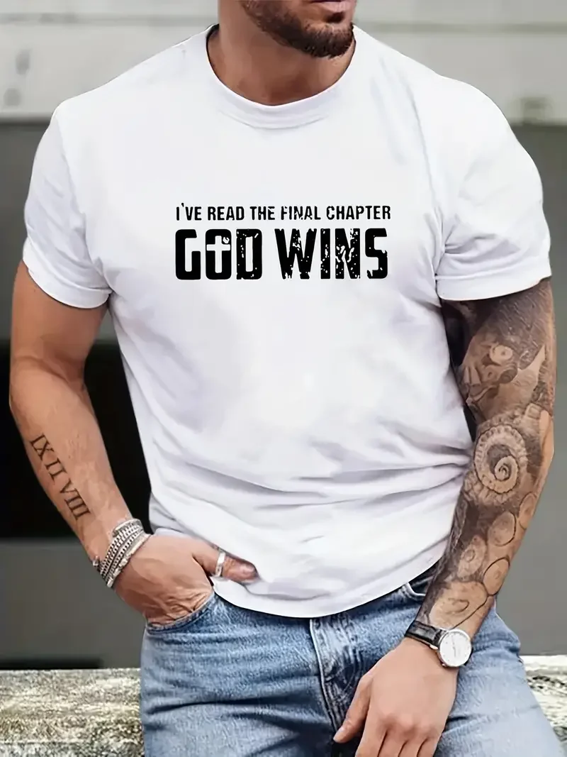 Get ready for summer with our "God Wins" T-shirt! Made from 100% cotton, this casual crew neck tee is perfect for everyday wear and makes a great gift. Available in sizes S-3XL, this shirt is suitable for all occasions and is sure to inspire with its powerful message. Don't wait, get yours now!