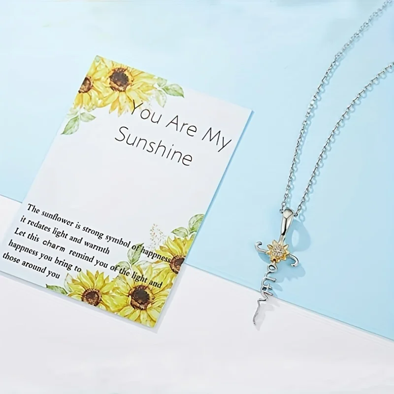 Experience the beauty and symbolism of this Sunflower Faith Necklace. Perfect for gifting to special women in your life - mom, wife, daughter, or sister. Crafted with quality metal and featuring a delicate sunflower pendant, this necklace will be cherished by everybody who wears it. Made with love in Mainland China.