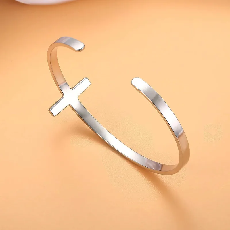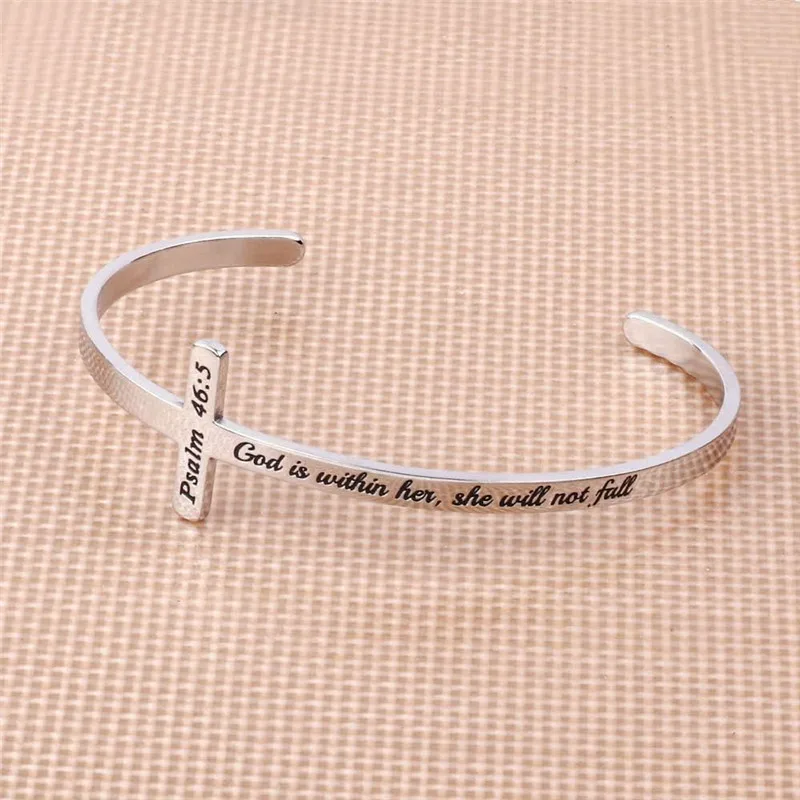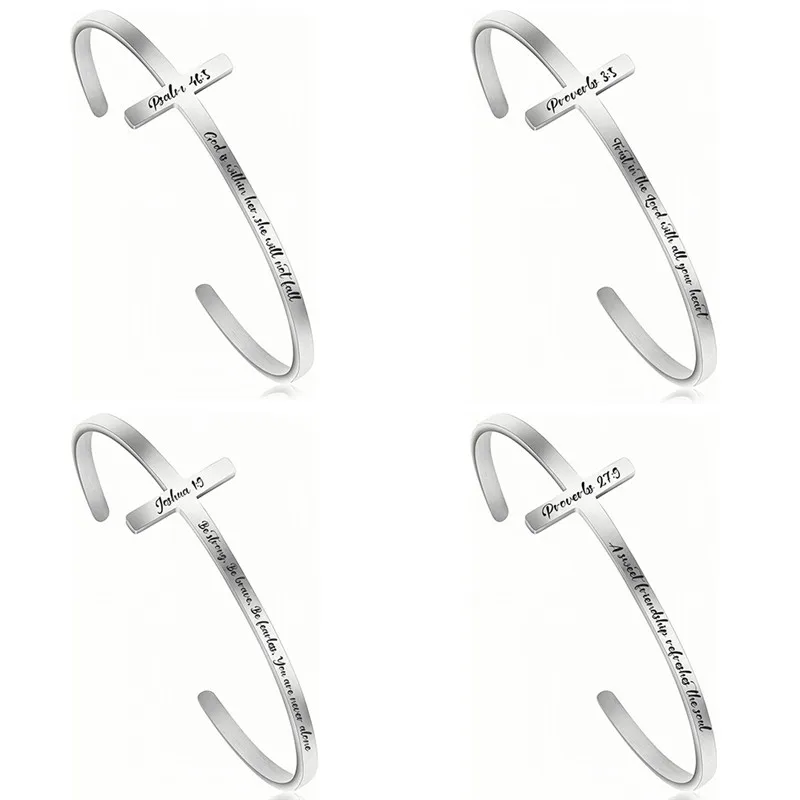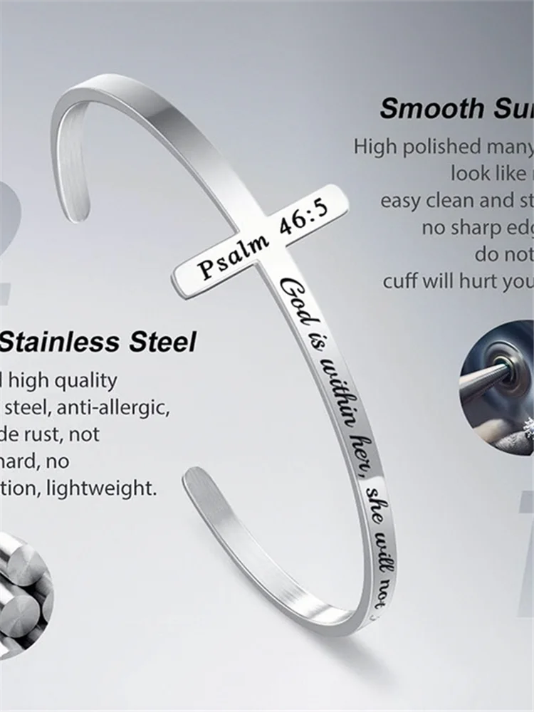 Elevate your look with our stunning Stainless Steel Cross Bracelet, thoughtfully designed for ladies who appreciate style and elegance. This exquisite accessory makes a premium gift for any special occasion, and its timeless design will complement any outfit. Crafted from high-quality stainless steel and featuring a classic cross shape with scripture engraved on it. This subtle cuff bracelet will remind you of God's love and support. Choose from a variety of options to find the perfect fit for your collection.